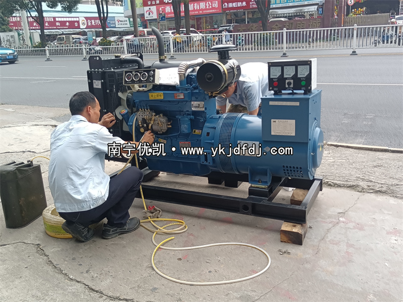 客戶到店現(xiàn)場試機,隨后裝車發(fā)貨梧州,作為應急電源。機組配置為:濰坊雷納發(fā)動機(型號:ZH4105ZD)、優(yōu)凱發(fā)電機、機組底座(帶吊裝孔)、水箱散熱器、空氣開關、減震器、自充電機,基本型控制系統(tǒng)、蓄電池、隨機附件、隨機文件等;