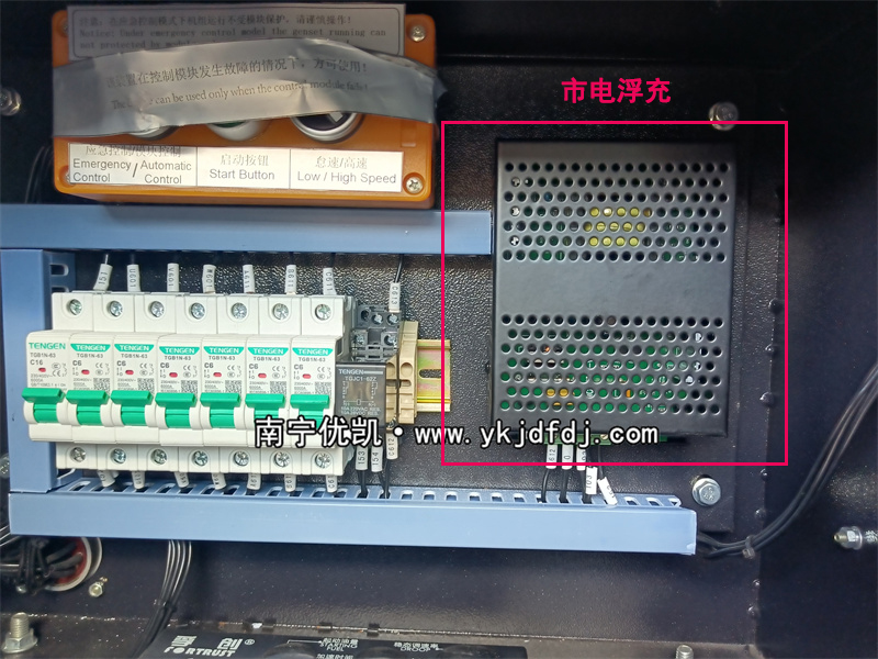 4、市電浮充指示燈亮起,說明市電浮充已經(jīng)在工作,已經(jīng)給發(fā)電機組電瓶充電了