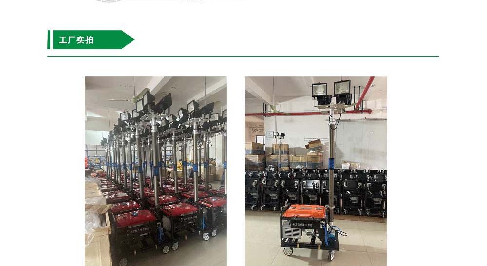 整套設(shè)備結(jié)構(gòu)合理、操作方便,自帶發(fā)電機,自動升降,外表精細、升降平穩(wěn),啟動快,在緊急情況下可以隨時點亮燈具,實現(xiàn)照明。